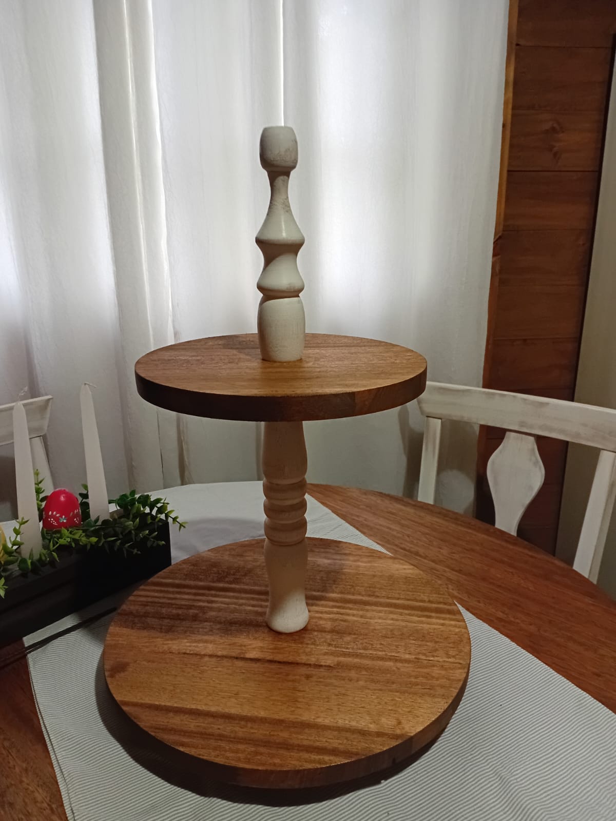 Bandeja Dupla com base lindamente torneada para decorar sua cozinha e até sua mesa posta.