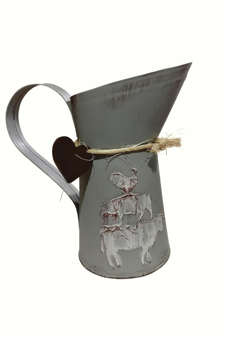 A Jarra Galvanizada Cinza Farmhouse traz funcionalidade e estilo para sua cozinha. Com 15cm de altura, essa jarra é fabricada em material galvanizado resistente, garantindo durabilidade e facilidade na limpeza. Seu design em relevo inspirado no estilo farmhouse combina rusticidade com um toque moderno, ideal para decorar ou servir bebidas.